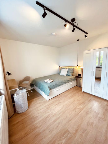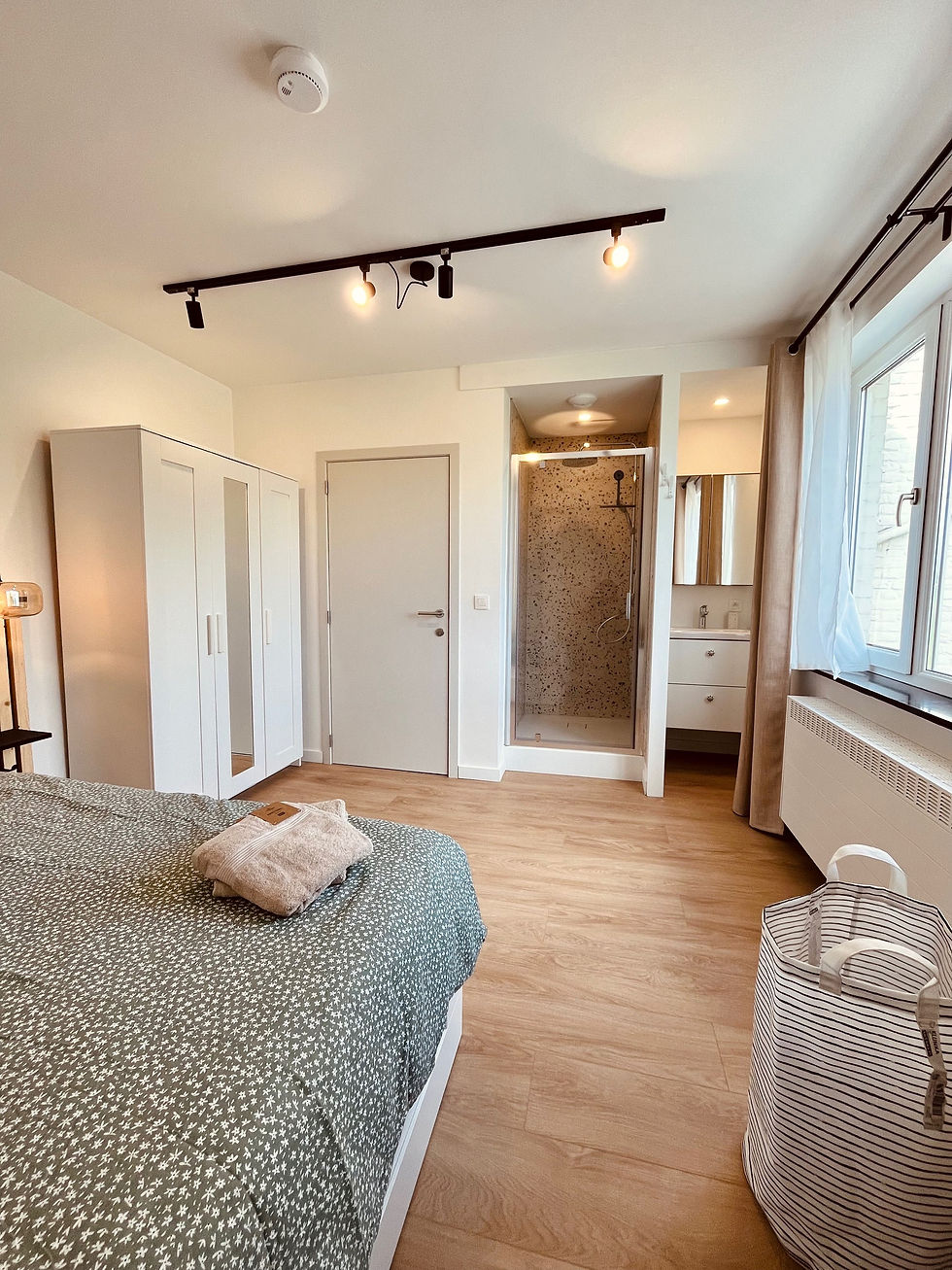 Située au premier étage, la Chambre 4 est très cosy. Elle possède une grande fenêtre qui donne sur nos voisins, les gentils chevaux d'en face. Le coin douche se compose d'une douche 90x90, d'un évier et de meubles de rangement. Le coin nuit se compose d'un lit de 140x200 (matelas et literie compris) et d'une grande penderie. Le coin travail se compose d'un bureau avec tiroirs et d'une chaise de bureau confortable.